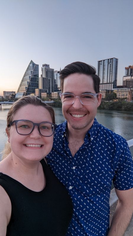 We love spending our free time in ways that keep us connected to each other, our community, and the outdoors. One of our favorite simple joys is walking our dogs—wandering through the park near our house, or just enjoying the fresh air together. Camping is another activity we both love. Packing up the car, cooking over a campfire, and sleeping under the stars gives us a chance to slow down and connect. Travel is another joy we share, especially international trips with our families. We can't wait to share those traditions with a child and watch them bond with their grandparents while exploring a new place together.