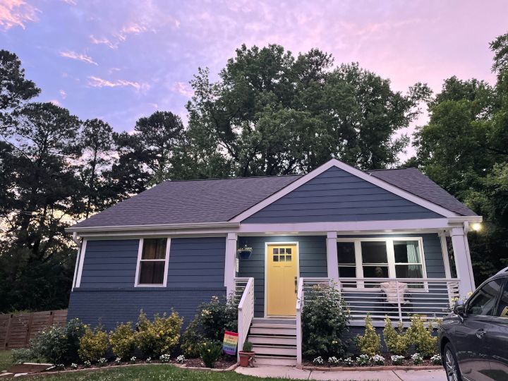 We live in a three-bedroom, two-bathroom, ranch-style home in North Carolina that was built in the 1950's but renovated in 2019 before we moved in. We have a large open floorplan and we spend most of our time in that large open living space where we enjoy spending time with friends and family. We have a large (half-acre) lot that is fenced-in with a deck; it is a great place for our dogs to play, but also kids enjoy running around when we host barbecues or nights around our firepit.